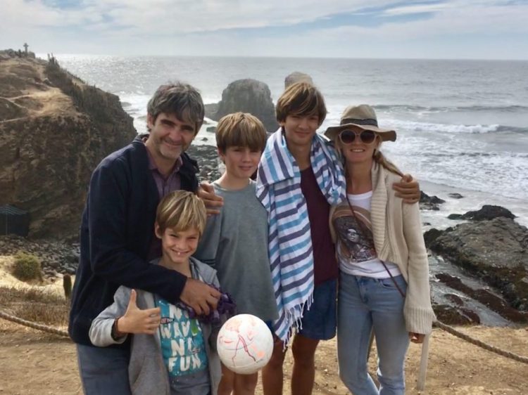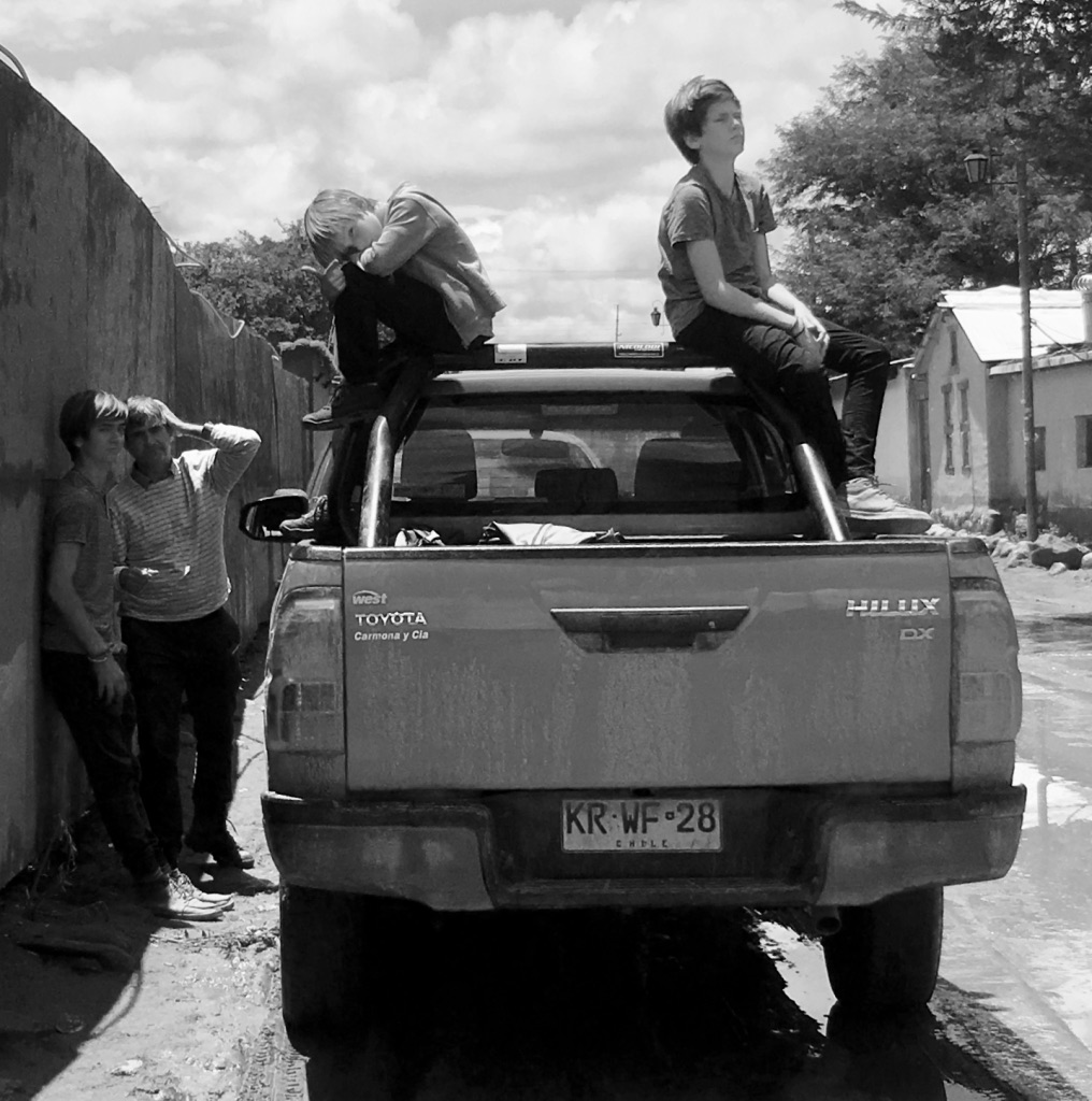 Family pic on the rocks in Punta Lobos. Boys had just come out of the freezing waters on their first day of surf. And….escaping the rain and floods in the Atacama Desert just in time!
