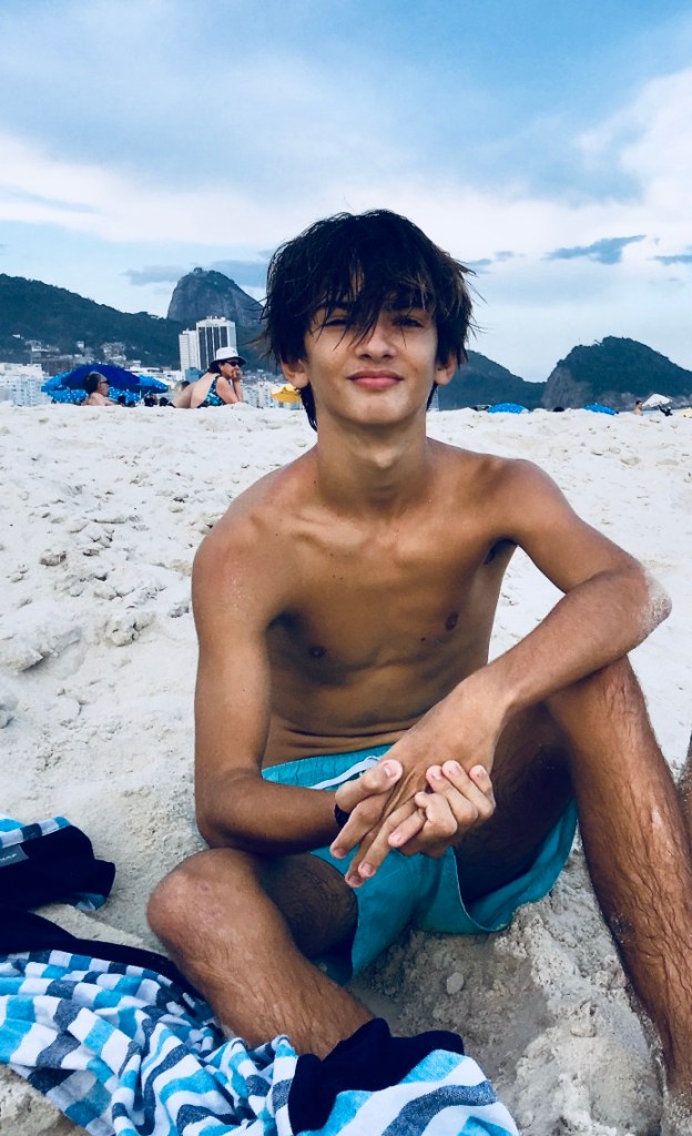 Ruben after a swim in the ocean at Copacabano Beach, Rio de Janeiro and Guido & Sam waiting for the ferry in Buenos Aires.